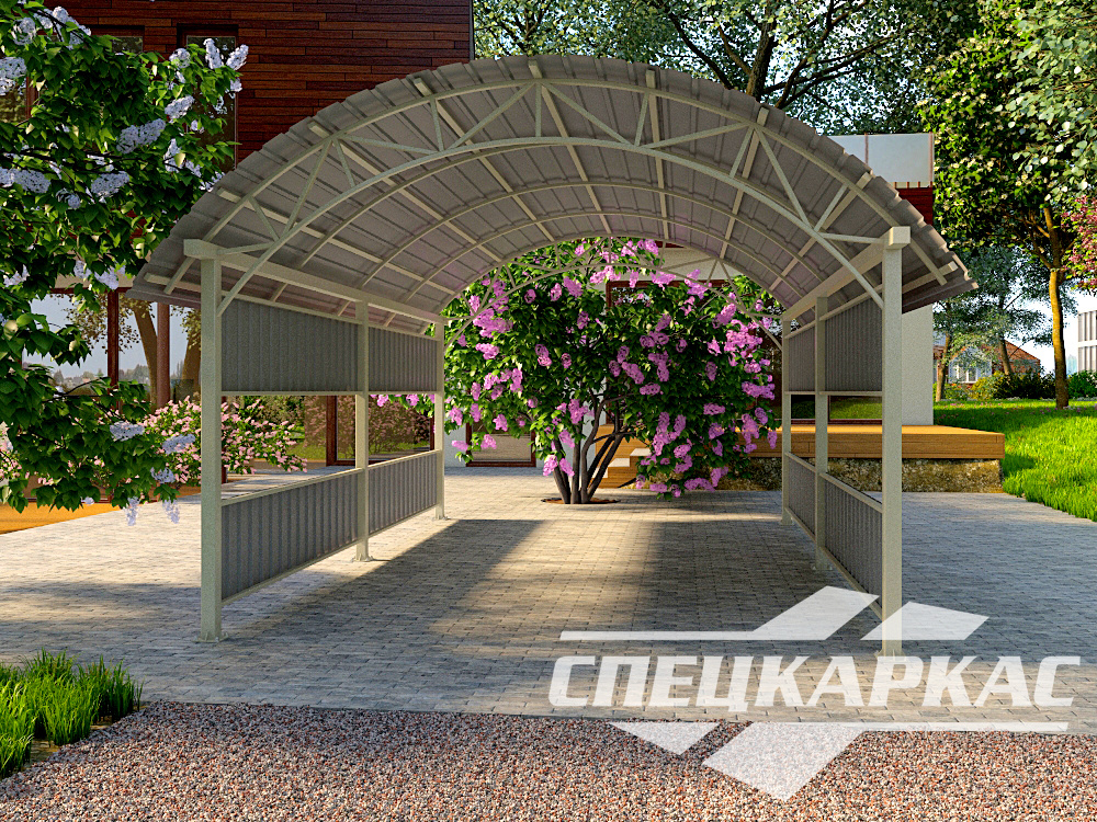 Купить навесы из профнастила на заказ. Более 15 готовых проектов. Профнастил можно использовать и в остальных моделях «Спецкаркас», которых в каталоге более 300. Доставка, установка под ключ — бесплатно в пределах 20 км от Москвы.
